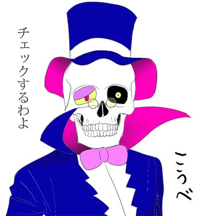 チェックするわよっ! イケてないわねっ!! 全然ダメねっ!!! オシャレこうべさん。オシャレなガイコツ。そしてオカマ。 ガイコツkoeeeeeeeeeeeeeeeeeeeeeeeeeeeee!!! 怖いの我慢して描きました。ガイコツだけはどうしても…ガクガク! アンパンマンのホラーマンとかもそうだけど、ああいう風に一見コミカルに描かれてはいるけど実際はかなり怖いと思うんだ。アンパンが歩いてるとか大した問題じゃねぇ。…白骨死体だぜ?アレ。 だがドMなのでトラウマにもめげずに描く。 まぁ目さえ先に入れてしまえば怖くありません。ターミネーターとか好き。 なんで今こうべかと言うと、妹に描いてくれって頼まれたからです。 ちなみに、このこうべは妹にエラく不評でした。 妹がここんところコウベにべた惚れで困る。…どうも、変なところで趣味が合うんだよな…アイツと私(女キャラの好みは妹とは全く合わない)。私もこうべ好きよ。 でも、最近の私のマイブームはユウちゃん。レッドウィスプカモン! …素直にユウちゃん描けばよかったよorz てか、妹が何気にぷよぷよ強いんですが。私が口程にも無いだけかもわからんが…。 ぶっちゃけフィーバー無しじゃ、カーバンクル辺り使わないとまず勝てません。それでも勝率芳しくないけど…。 フィーバありだと、アイツまだフィーバーの発生条件知らないから(オイ)勝てるんだけどね。 鍛えるか! てかフィーバーチュー欲しいよ。 |