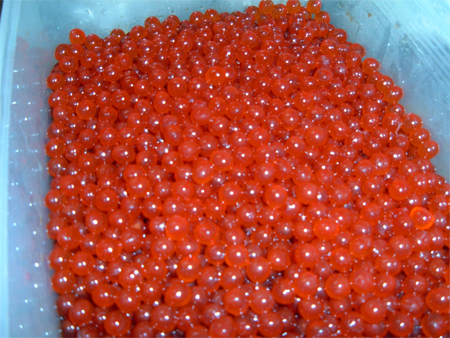 サケ釣れた!(パパが釣った) 雌だったので、念願のイクラの醤油漬けをつくりました。 見てよ…この輝き、もう宝石だよね…思わずうっとり。。。 まるでレッドトパーズのようなその輝きは、まさしく海の宝玉! (実はちょっと色調補正かけたのはナイショだ!) 海の旨みとエネルギーが詰まった真紅の恵み『イクラ』。麹の醸しが生んだ東洋の神秘『醤油』。恵みの粒と神秘の雫が溶け合って、ここに奇跡が生まれた!これぞまさしく究極の逸品『イクラの醤油漬け』! 炊き立ての熱々ご飯にイクラをのせれば、宝石の山の如く鮮やかな輝きを放つイクラ丼の完成!口の中で弾ける真紅の喜びは、まさに至福…!! むっふふふ、イクラ丼喰うぜぇ〜! そんなワケで、味覚の秋の始まり始まり。 命って美味しいね。いやぁ生き物の皆様、ホントご馳走様です!感謝しないとね。 |